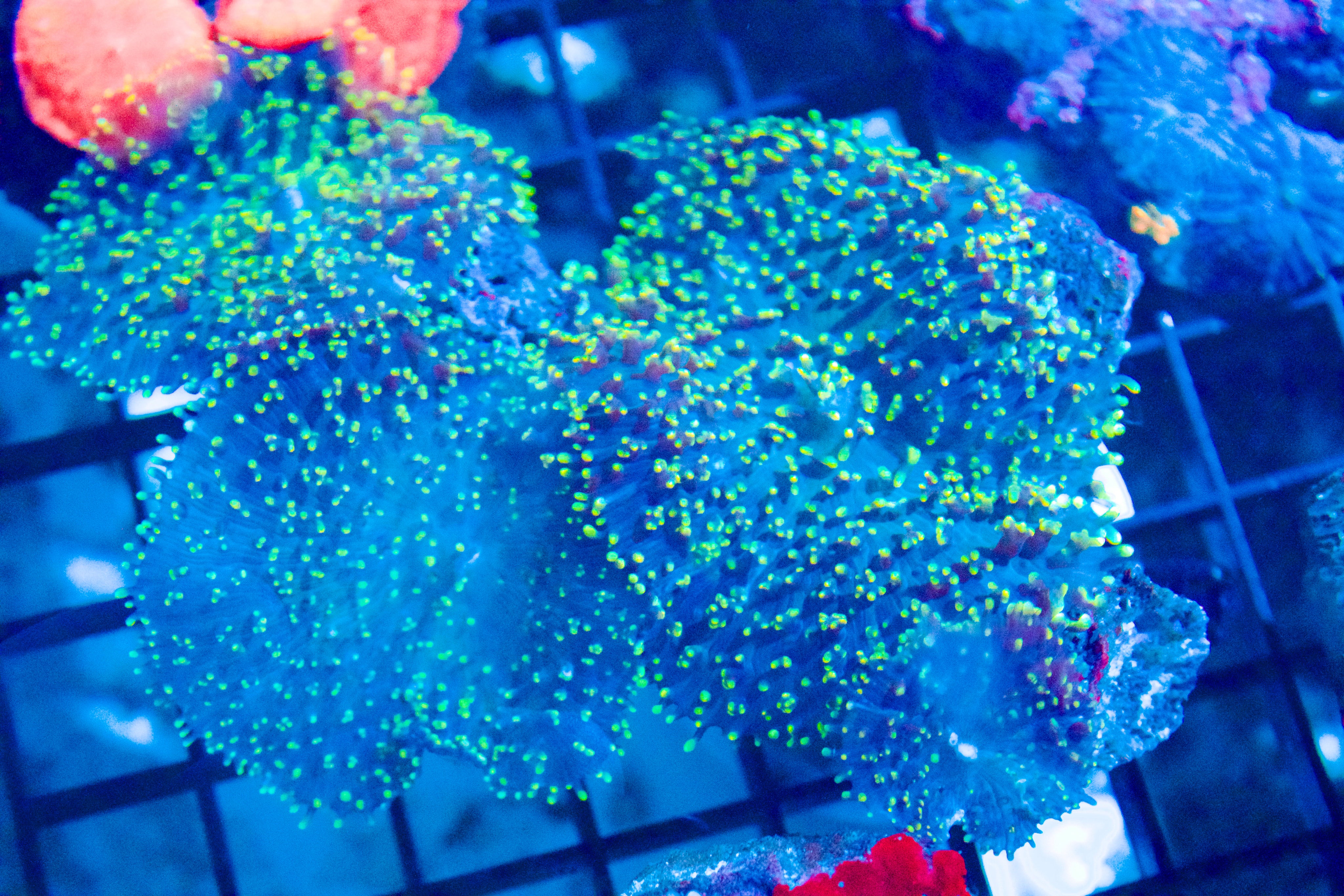 1 live rock with an average of 4–5 healthy Hairy Green Mushroom polyps