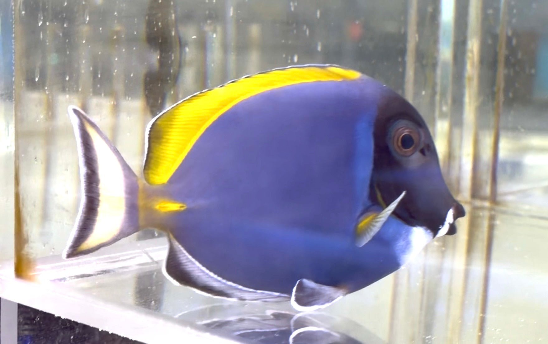 A high-quality algae-based diet is essential to maintain their vivid coloration and long-term health. A tight lid is recommended, as tangs can become startled and may jump.